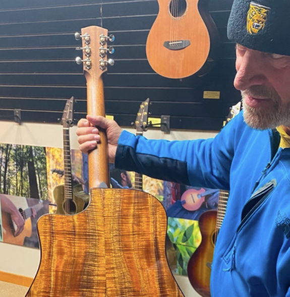 Jim is the band’s true master craftsman! Not only does he bring the soul on the guitar and pedal steel, but he actually hand-builds the instruments the band plays. From mandolins to complex pedal steels, Jim’s craftsmanship is the literal backbone of their sound. His expertise with the pedal steel guitar adds a unique, twangy dimension to the trio, and whether he’s trading lead vocals or locking in those middle harmonies, Jim’s musical fingerprints are all over every song they play.